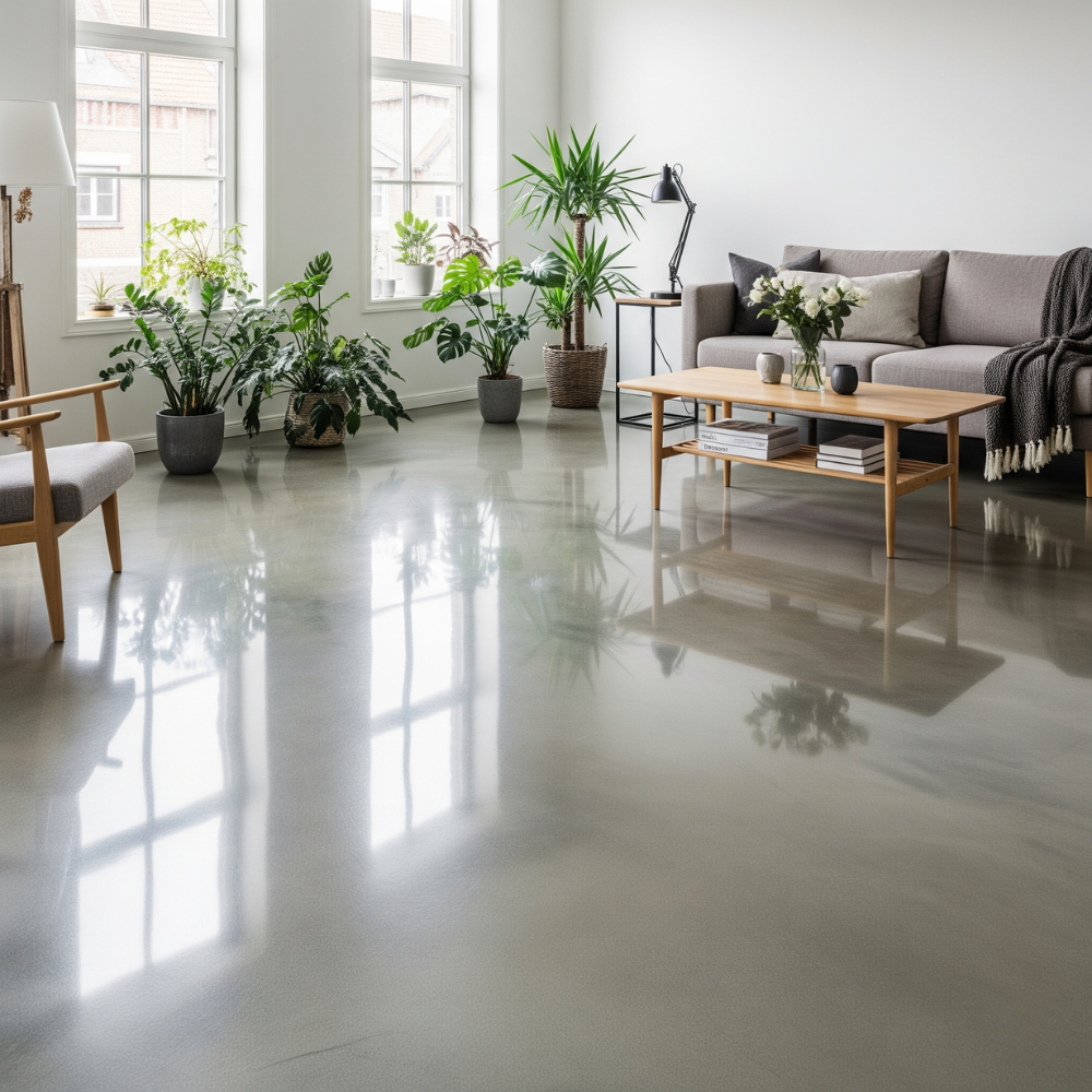 Dekoracyjne posadzki betonowe do garaży, domów i biur. Możliwość wykończenia impregnatami lub lakierem poliuretanowym.