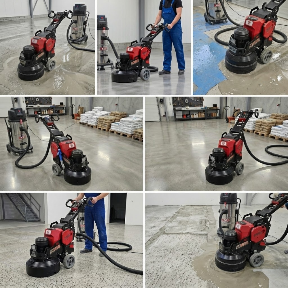 Przygotowanie pod systemy Epidian Floor i inne żywice podłogowe – usuwanie mleczka cementowego, wyrównanie i nadanie odpowiedniej chropowatości.